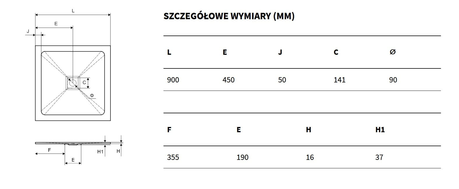 Arda Brodzik kompozytowy kwadratowy, czarny BREX.1502.090.090.BLN