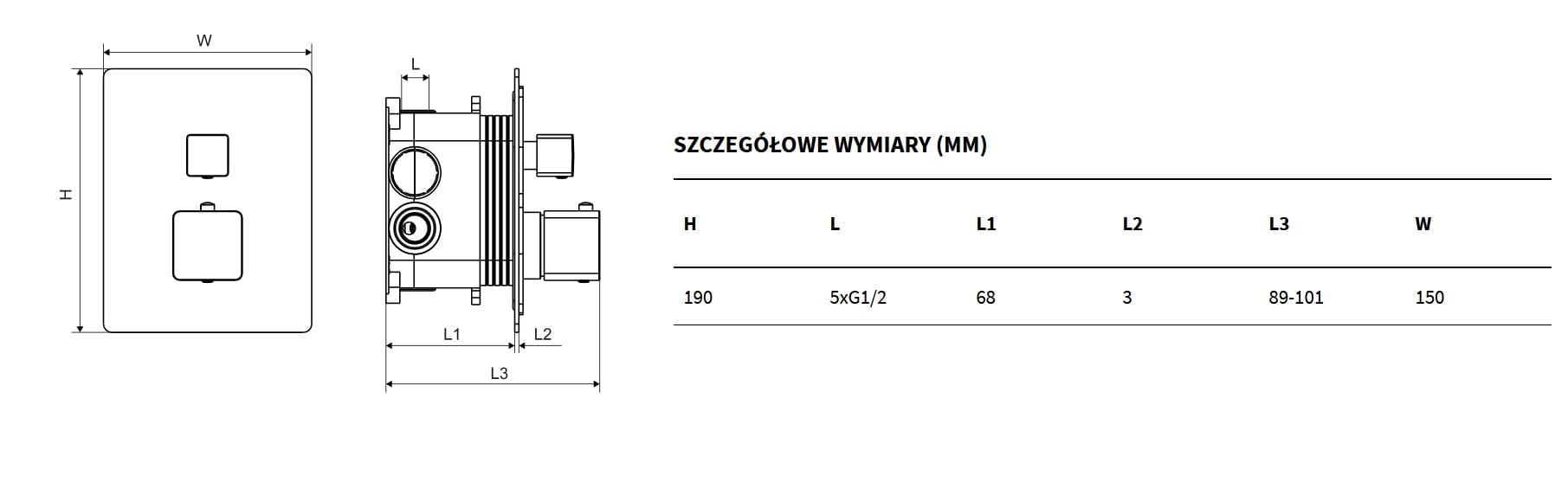 Keria Bateria prysznicowo-wannowa podtynkowa termostatyczna 3-funkcyjna AREX.2048BL