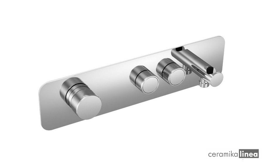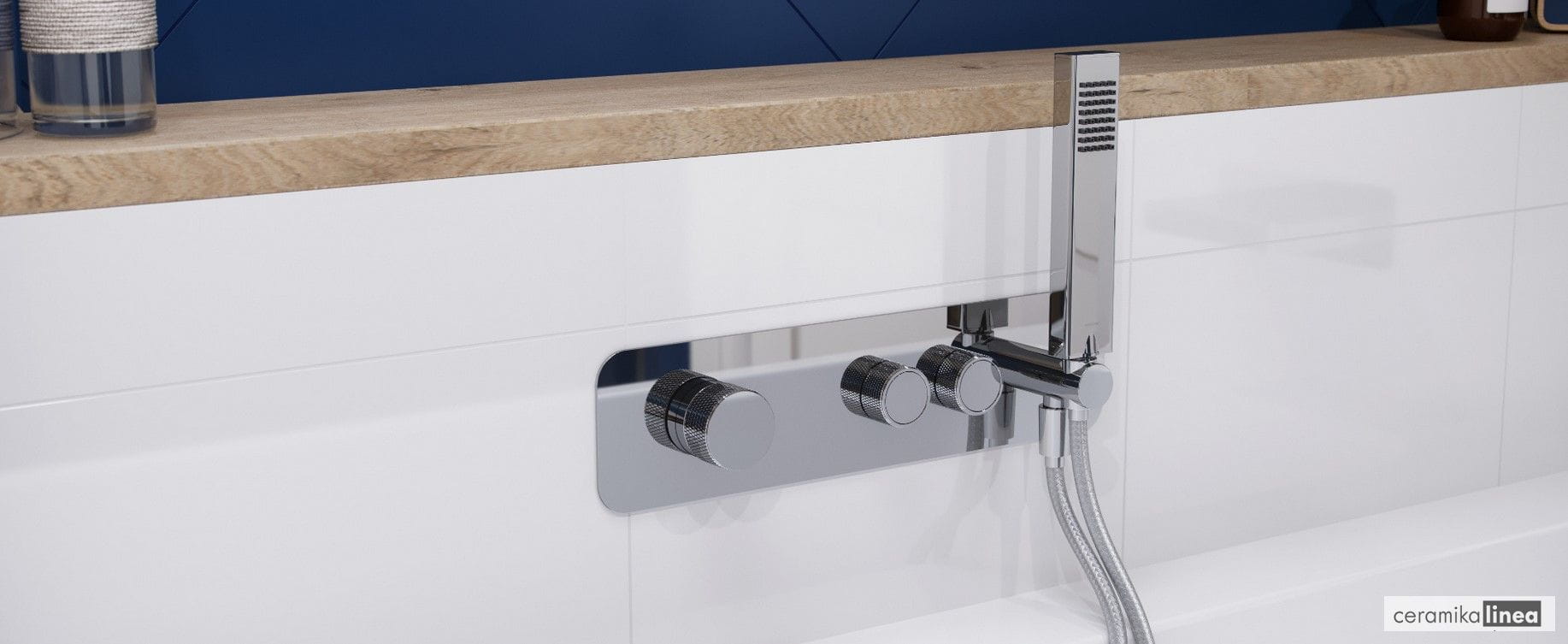 Bateria prysznicowo-wannowa 2-funkcyjna podtynkowa serii Krotos posiada Fix-Box, który ułatwia instalację baterii oraz zapewnia stały dostęp rewizyjny do mechanizmu baterii. Mechaniczny przełącznik funkcji pozwala na wygodny wybór wypływu wody – system Easy-Click pozwala na regulację jednocześnie źródła wody (włącz-wyłącz) oraz ciśnienia przez obrót tego samego pokrętła. Temperaturę można regulować dzięki pokrętle po lewej. Bateria posiada wbudowany uchwyt słuchawki prysznicowej z przyłączem kątowym dla węża prysznicowego.