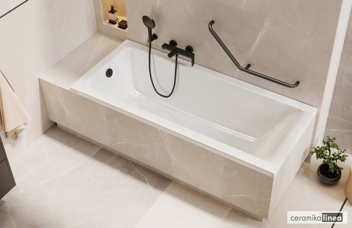 Wanna Savia, formą nawiązuje do prostych i czystych linii. Jest to wanna o mniejszej głębokości dzięki temu bardzo wygodna w użytkowaniu – dużo bardziej komfortowa w użytkowaniu, a przy okazji bardziej ekonomiczna pod kątem ilości wody potrzebnej do kąpieli.
