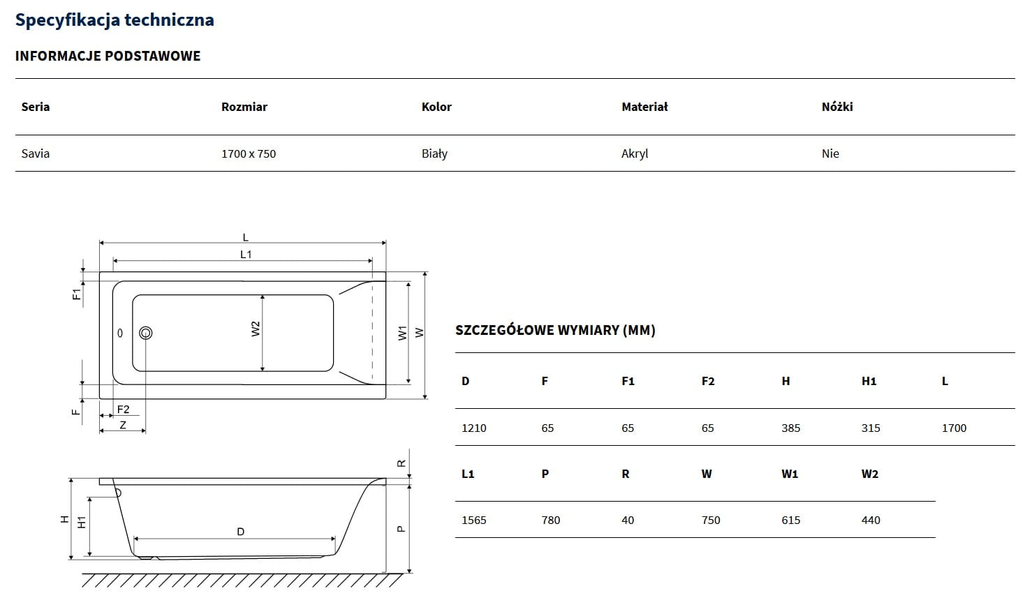 Do wanny Savia należy dokupić zestaw nóżek wannowych o kodzie WAIN.NWT50.