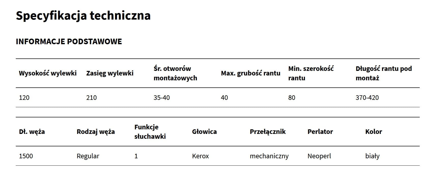 Bateria pozwala na montaż na rancie wanny lub na płytkach (o grubości do 40mm). Wykonana z mosiądzu, posiada głowicę ceramiczną Kerox oraz mechaniczny przełącznik. Może być instalowana na rancie o szerokości min. 80 mm i długości 370-420mm. Wylewka o wysokości 170 mm ma zasięg 196mm.