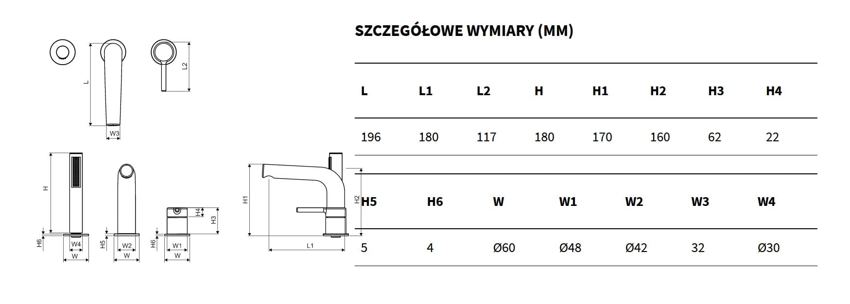 Bateria pozwala na montaż na rancie wanny lub na płytkach (o grubości do 40mm). Wykonana z mosiądzu, posiada głowicę ceramiczną Kerox oraz mechaniczny przełącznik. Może być instalowana na rancie o szerokości min. 80 mm i długości 370-420mm. Wylewka o wysokości 170 mm ma zasięg 196mm.