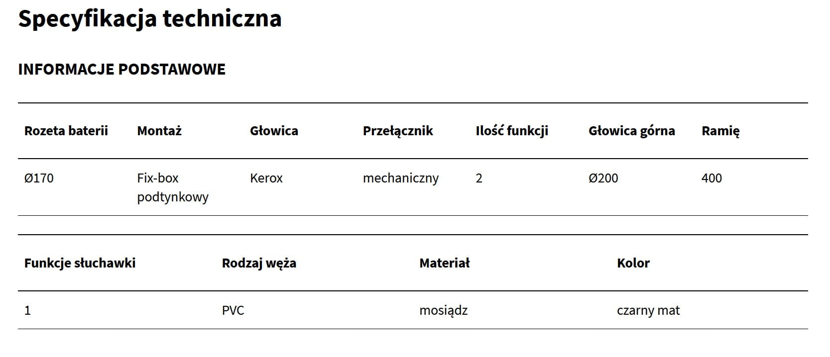 - słuchawka prysznicowa 1-funkcyjna.