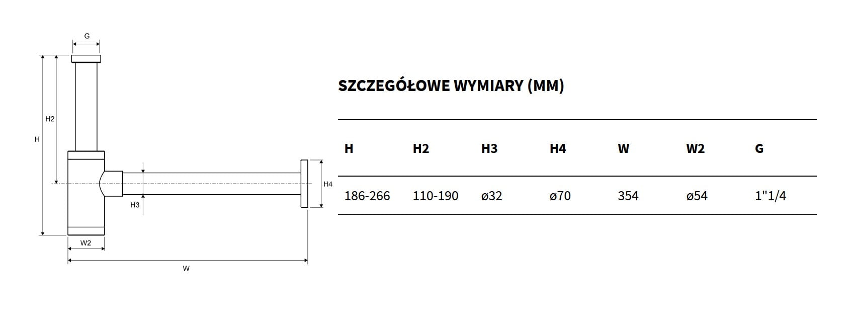- regulowana wysokość podłączeniowa max 190 mm