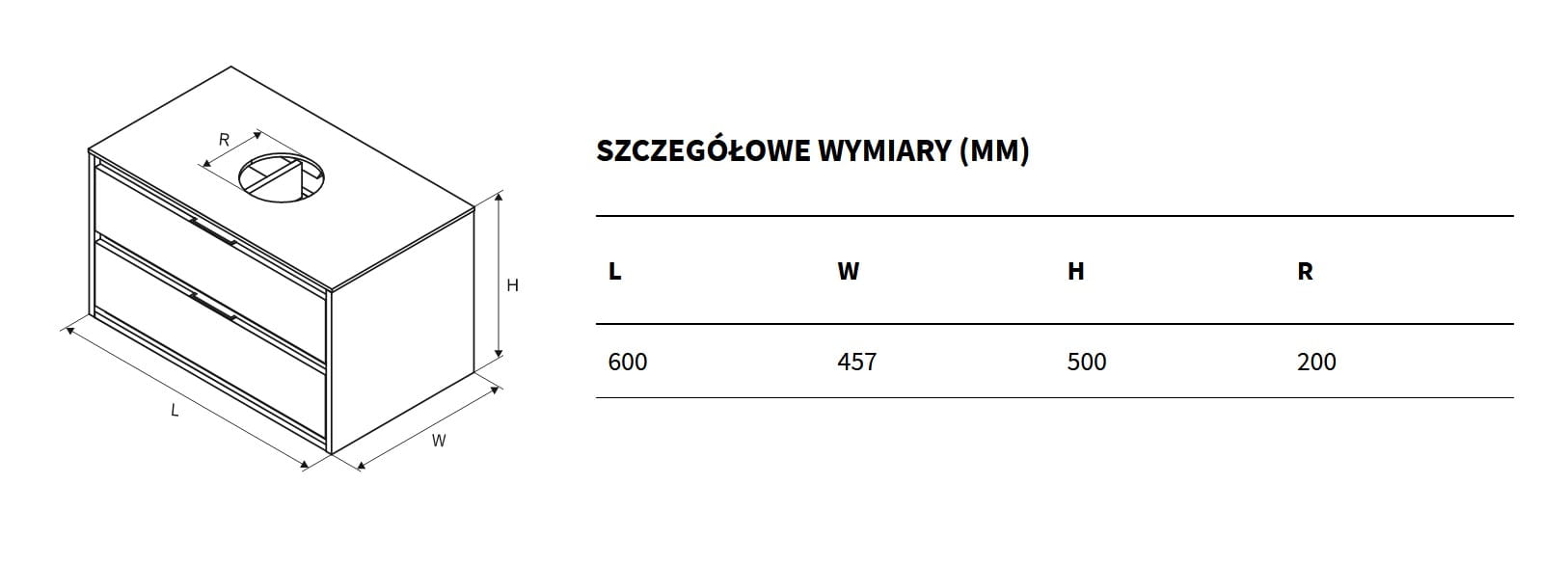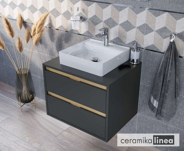 Tuto Szafka pod umywalkę nablatową, 2 szuflady, czarny / dąb MLEX.0104.600.BKBL