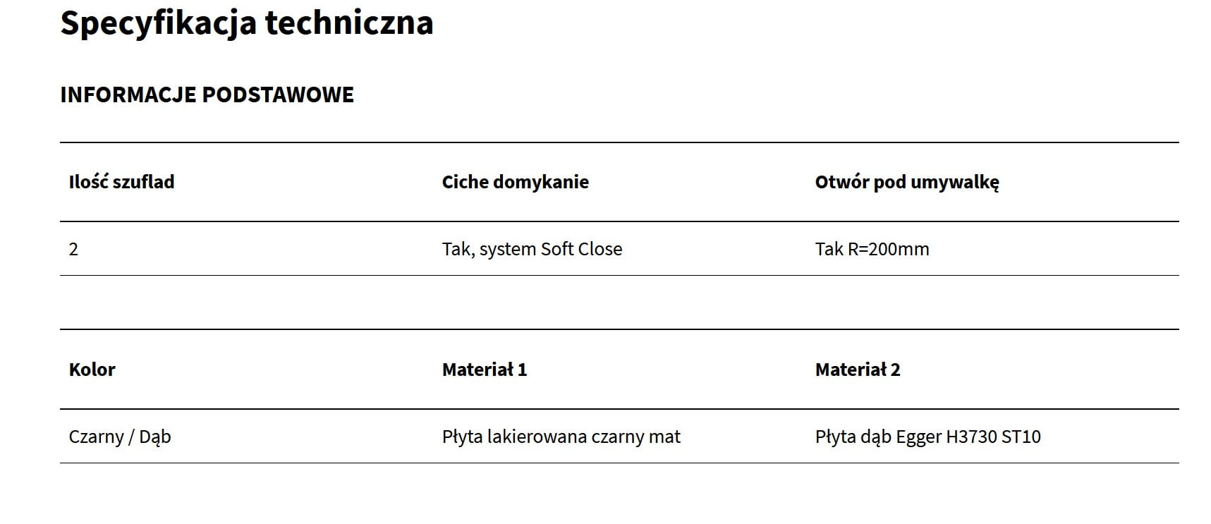 Szafki posiadają dwie szuflady z systemem cichego domykania Soft Close. Są one zamontowane na prowadnicach Hettich, które cenione są za najlepsze parametry techniczne oraz gwarantują ciche i płynne wysuwanie szuflad. Ich wnętrze uzupełniają przegrody ułatwiające utrzymanie porządku.