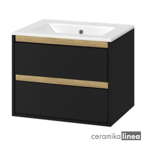 Tuto Szafka z umywalką AS, 2 szuflady, czarny / dąb 600mm MLEX.0103.600.BKBL