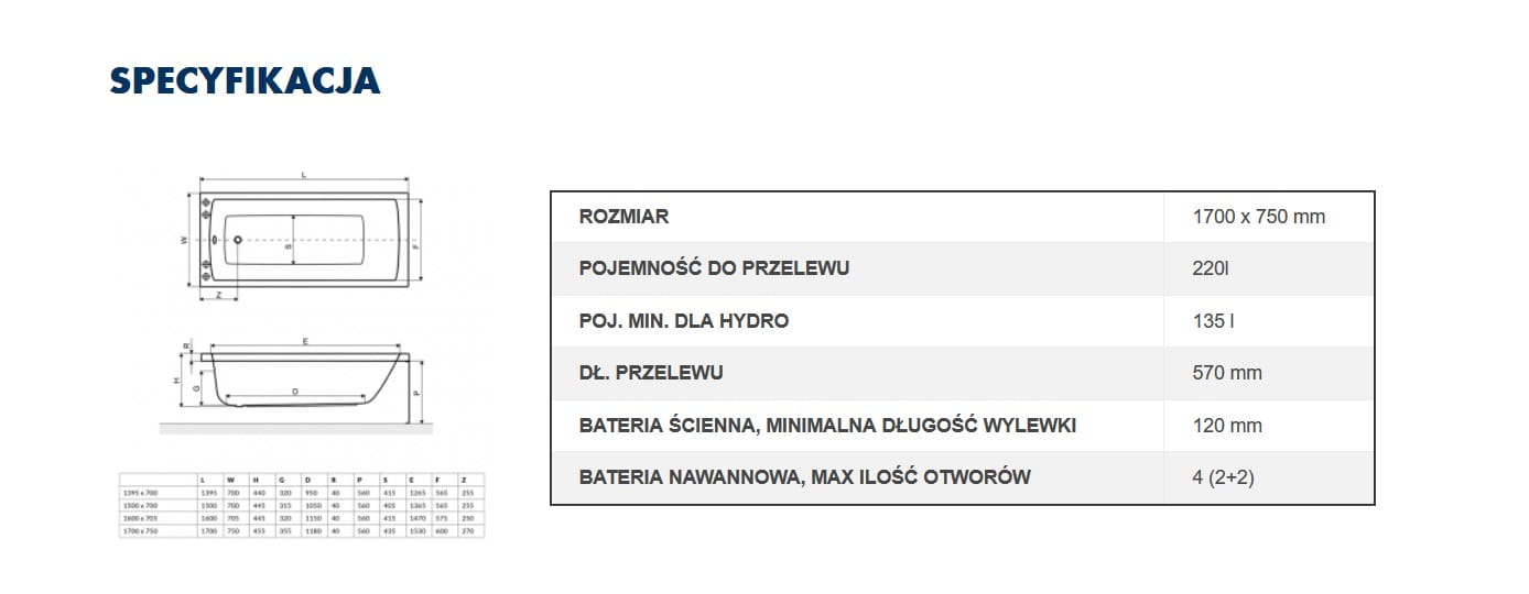 Wzmocniona konstrukcja - dna naszych wanien wzmocnione są płytami, które zapewniają odpowiednią stabilność i odporność produktu.