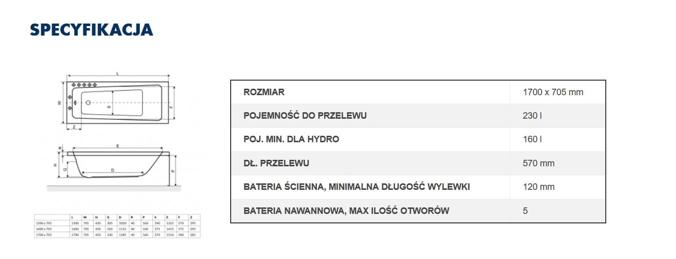 Wzmocniona konstrukcja - dna naszych wanien wzmocnione są płytami, które zapewniają odpowiednią stabilność i odporność produktu.