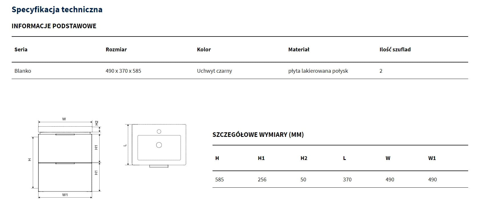 Blanko Szafka biała z umywalką z otworem, rozmiar 49 uchwyt czarny Produkt złożony z: