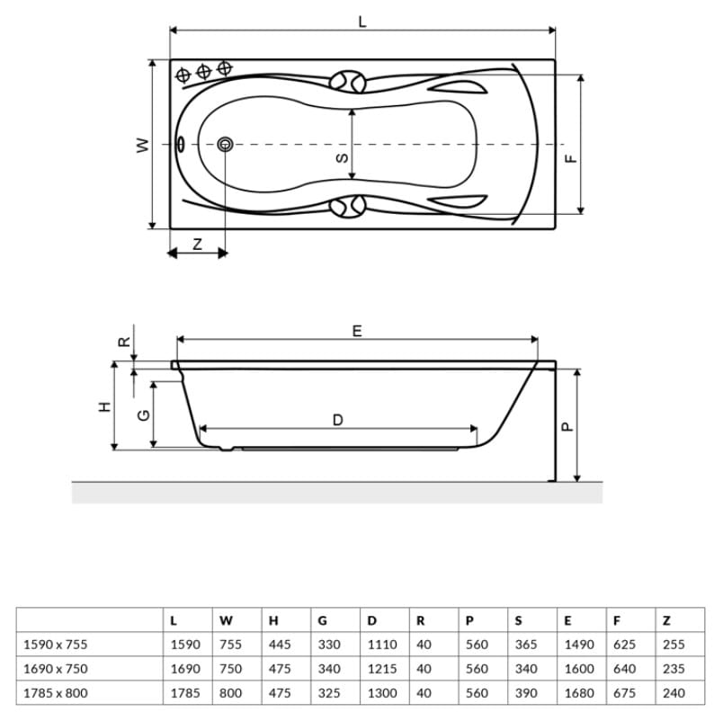 Do wanny można zamontować systemu hydromasażu lub chromoterapii.