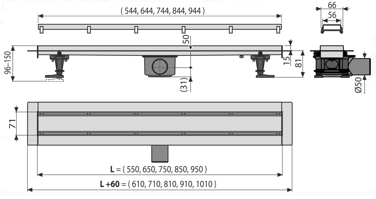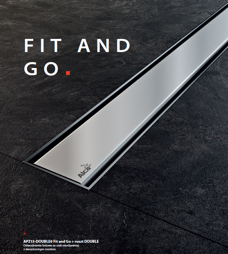 Fit and Go odpływ liniowy 55cm ze stali nierdzewnej 81mm/50l/fi50 + ruszt Double Alcaplast APZ13-DOUBLE9-550