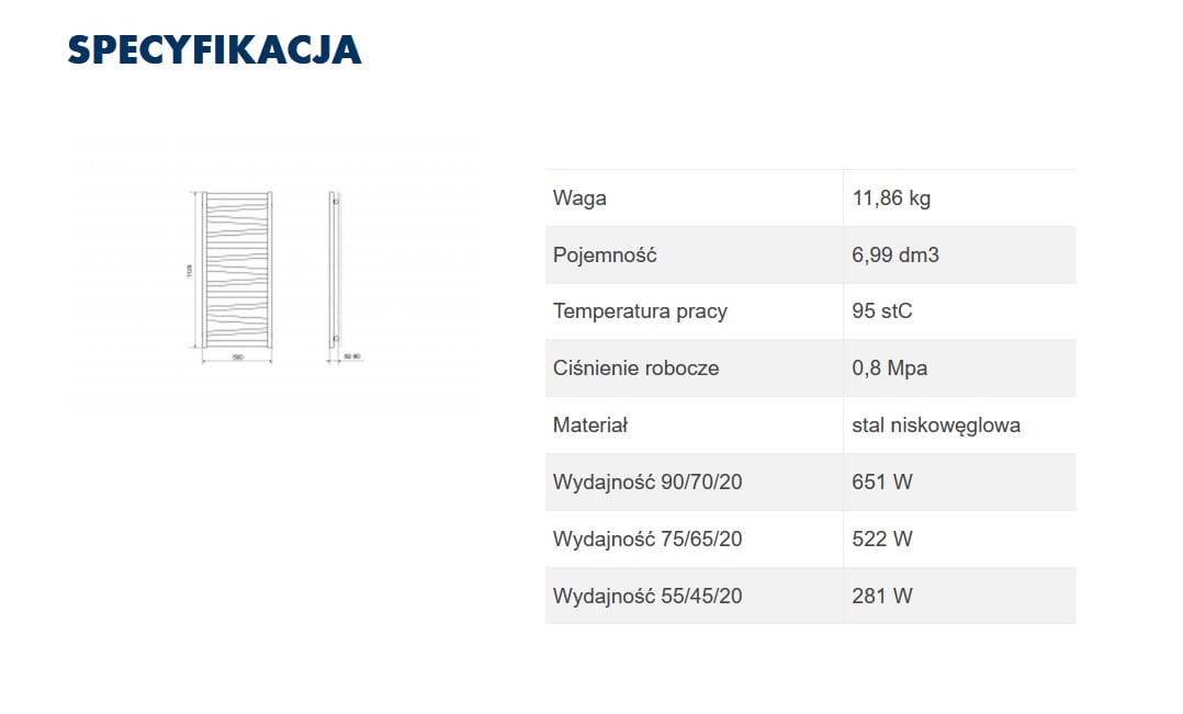 Grzejnik łazienkowy 1125x500 Italic 113 czarny mat GREX.IT113.BL