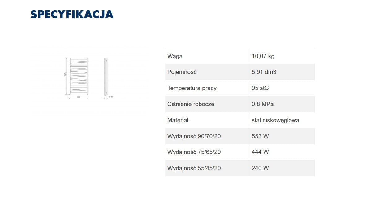 Producent zapewnia 8-letnią gwarancję na szczelność oraz powłokę grzejnika.