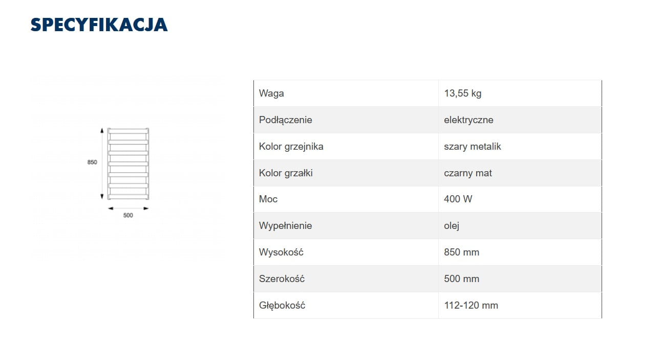 Grzejnik łazienkowy elektryczny czarny Meteor 85, elektryczny GREX.ME85.SET.BL