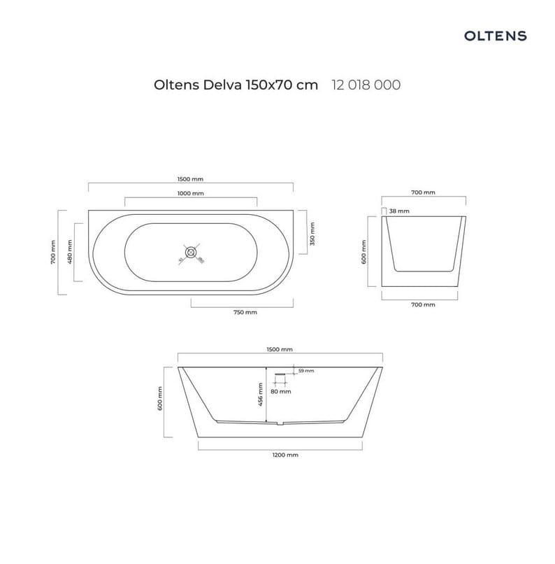 Oltens Delva wanna wolnostojąca przyścienna 150x70 cm akrylowa owalna biała 12018000