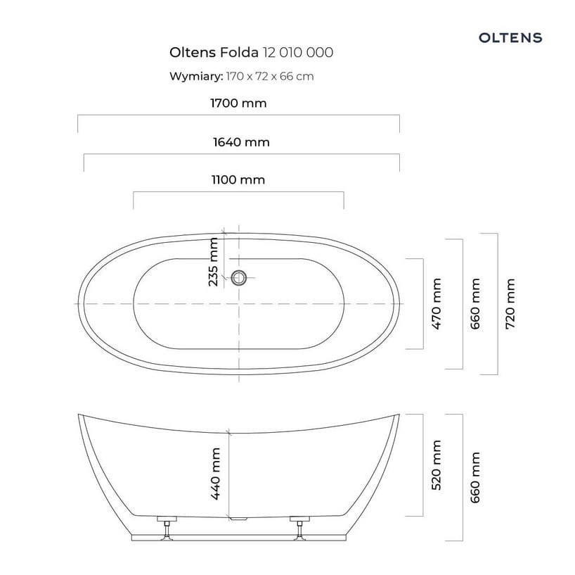 Oltens Folda wanna wolnostojąca 170x72 cm owalna akrylowa biała 12010000