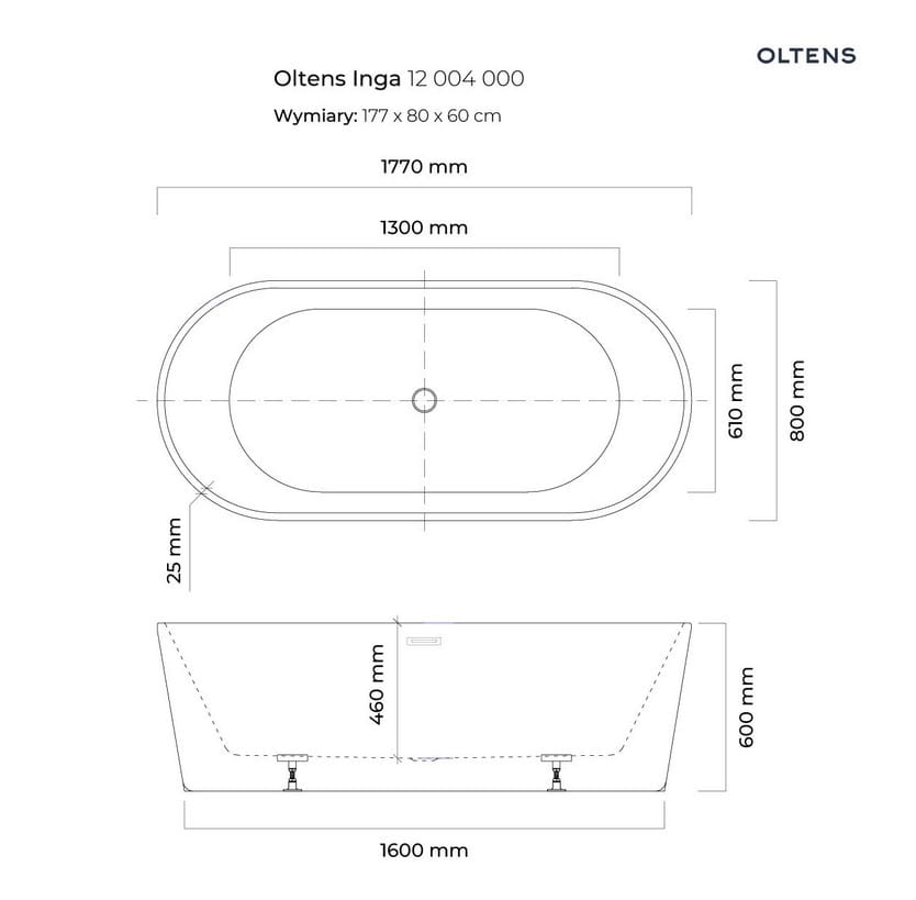 Oltens Inga wanna wolnostojąca 170x80 cm owalna akrylowa biała 12004000