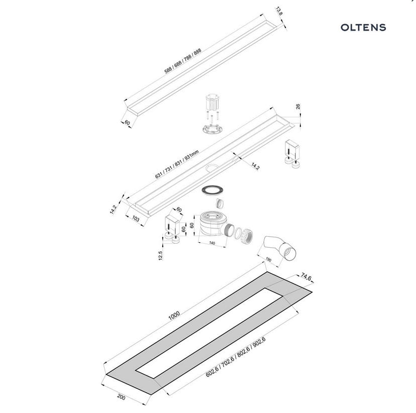 Uniwersalny odpływ prysznicowy liniowy Oltens Langan 90 to idealne rozwiązanie dla osób, które nie widzą w swojej łazience tradycyjnego brodzika i kabiny, lecz bardziej efektowne i nowoczesne rozwiązania typu walk-in. Odpływ wyposażony został w syfon niski (6 cm) o wydajności 54l/min, dzięki czemu można go zastosować praktycznie w każdej łazience – także w bloku. Zestaw zawiera dwa ruszty, jeden do wypełnienia płytką i drugi pełny w kolorze stali szczotkowanej. Daje to użytkownikowi pełną swobodę w aranżacji swojej łazienki.