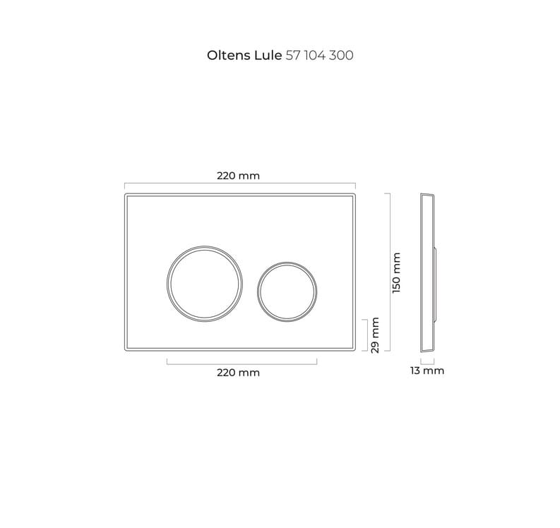 Oltens Lule przycisk spłukujący do WC w kolorze czarnego matu podkreśli każdą nowoczesną łazienkę. W ciemniejszych aranżacjach doskonale wypełni wnętrze, zaś w jaśniejszych przykuje uwagę i sam w sobie stanie się ozdobą. Przycisk spłukujący Oltens Lule nadaje się do instalacji ze stelażem WC Oltens Triberg.