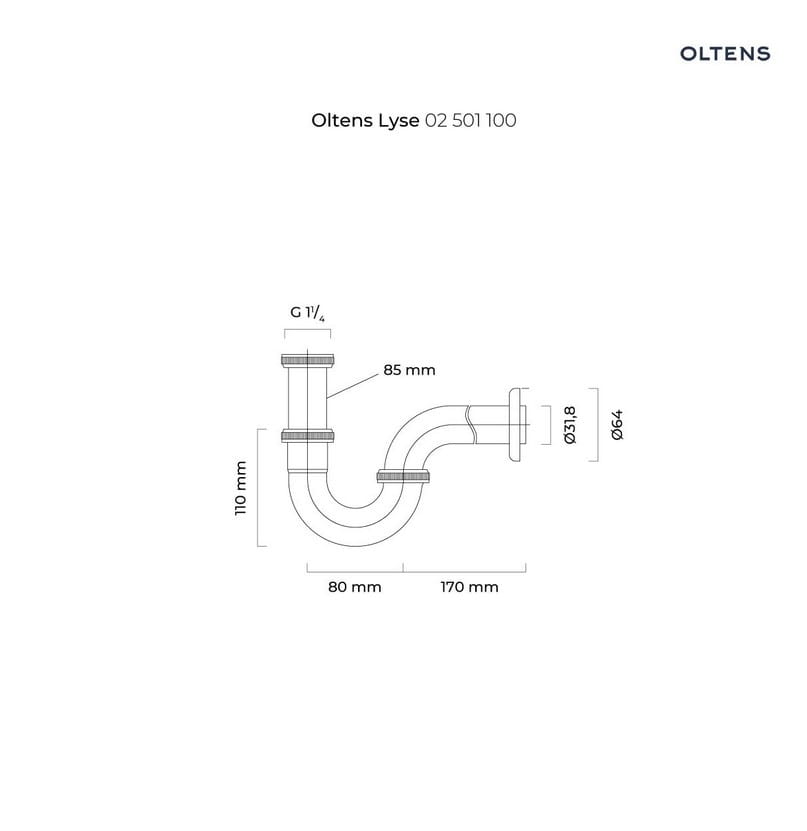 Oltens Lyse syfon umywalkowy mosiężny rurowy chrom 02501100