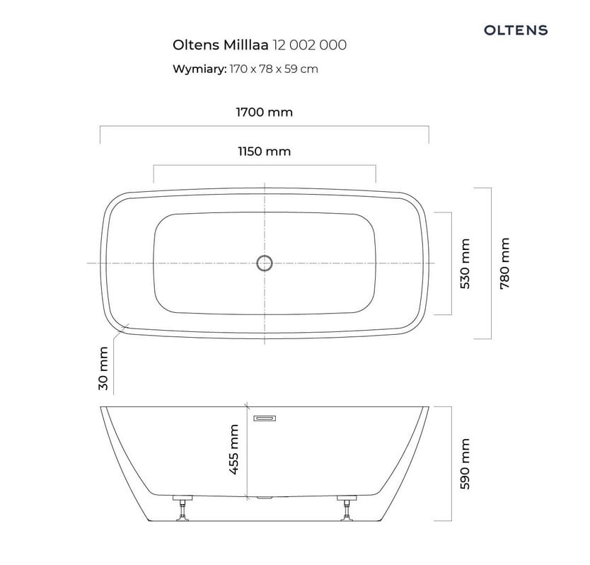 Oltens Millaa wanna wolnostojąca 170x78 cm owalna akrylowa biała 12002000