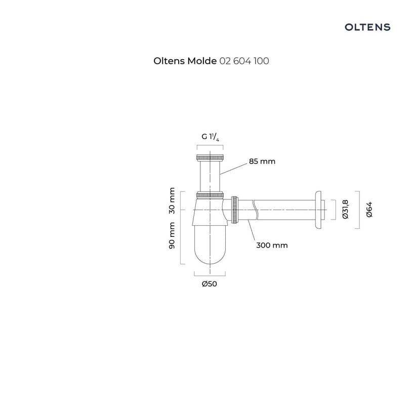 Oltens Molde syfon umywalkowy butelkowy mosiężny chrom 02604100