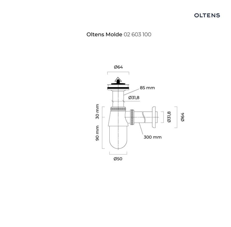 Oltens Molde syfon umywalkowy mosiężny butelkowy z korkiem chrom 02603100