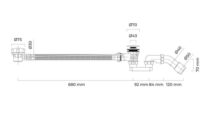 - regulacja od korka w umywalce do kielicha syfonu: 100-280 mm