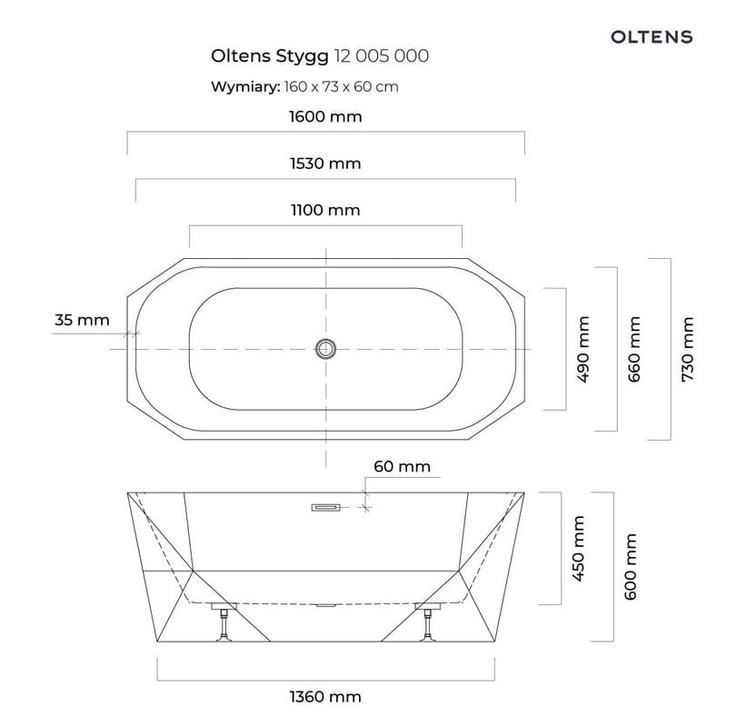 Mimo swoich geometrycznych kształtów na zewnątrz, wanna Stygg ma owalne, bardzo wygodne wnętrze, dzięki czemu każda kąpiel będzie czystą przyjemnością. Jej wielkość 160 x 73 cm i spora pojemność pozwalają na komfortowe ułożenie się. Krótsze boki są delikatnie pochyłe, tworząc dla pleców świetne oparcie. Wanna została wykonana z grubego akrylu, który świetnie utrzymuje ciepło. Dodatkowo pokryliśmy ją również solidnym laminatem, by łatwo było utrzymać ją w czystości i by przetrwała próbę czasu lśniąc doskonałą bielą każdego dnia.
