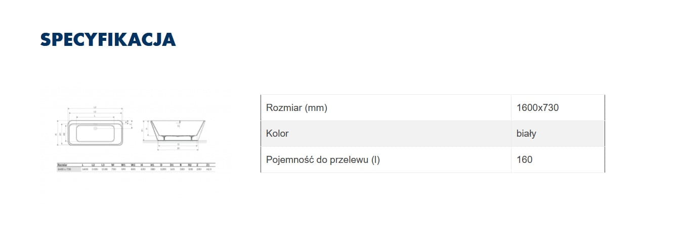WANNA WOLNOSTOJĄCA Lila 2.0 WAEX.LIL2.160.WHW